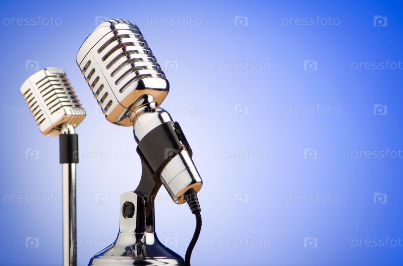 Два студийных микрофона на голубом фоне