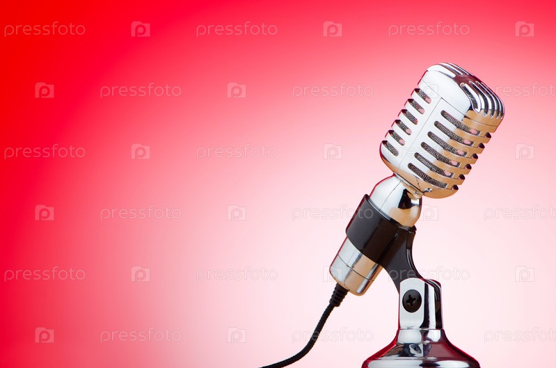 Студийный микрофон на красном фоне