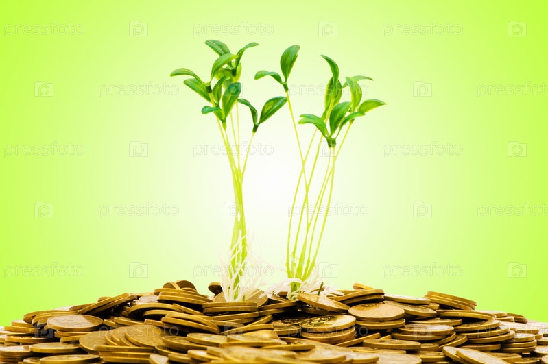Зеленые ростки с монетами