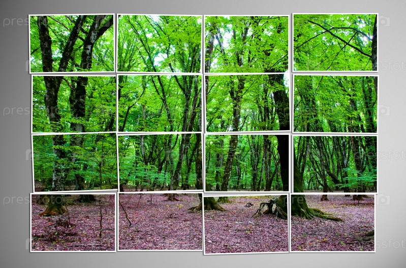 Фотография леса, разрезанная на части
