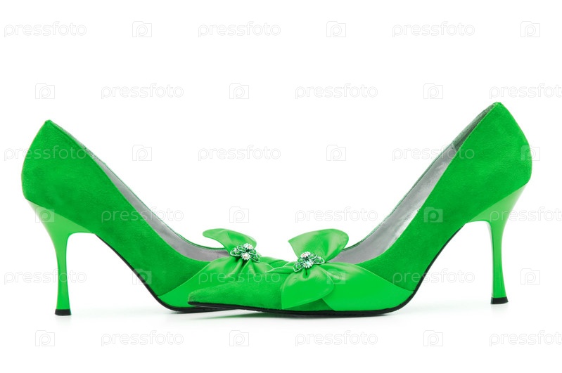 Зеленые женские туфли на белом фоне