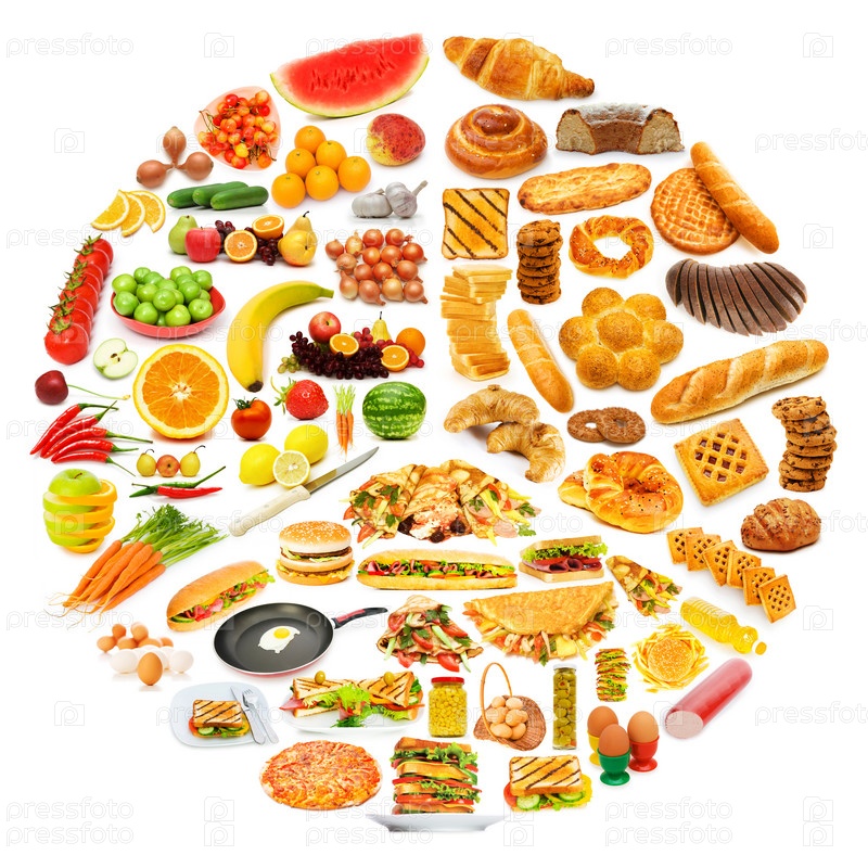 Различные продукты на белом фоне