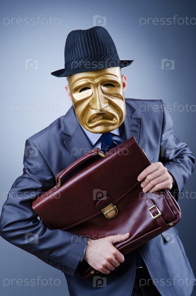 Предприниматель в золотой маске с портфелем