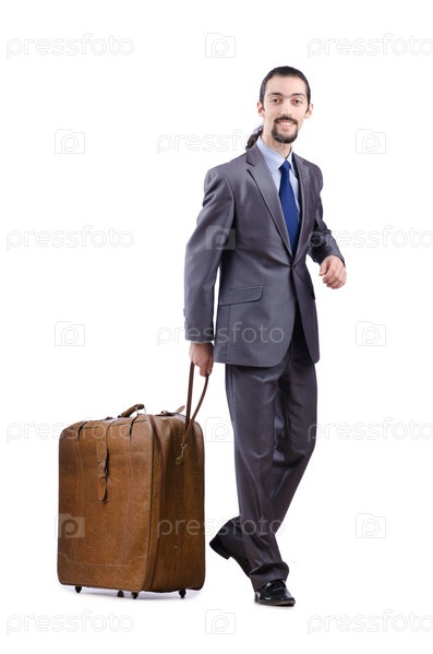 Деловой мужчина с чемоданом, концепция путешествия