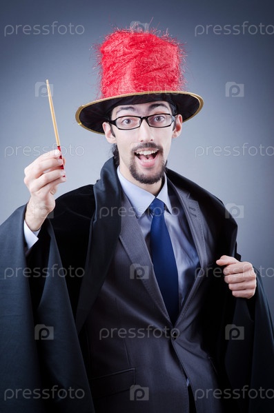 Фокусник в деловой костюме