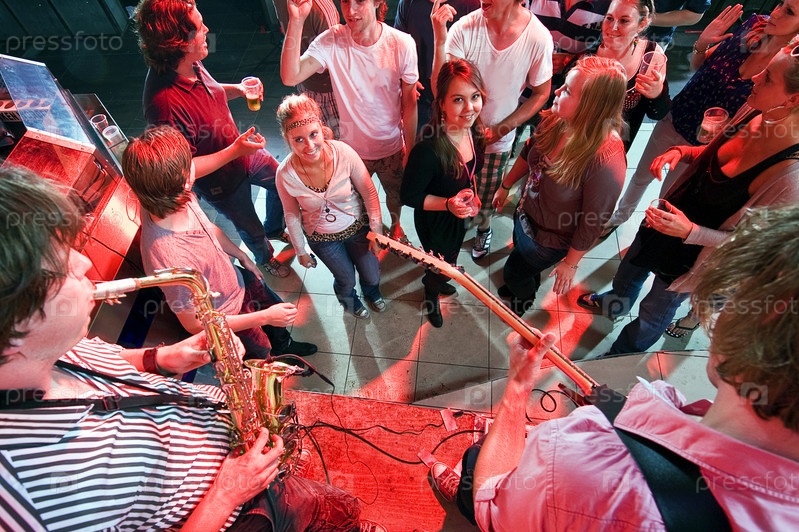 Люди в ночном клубе, живая музыка