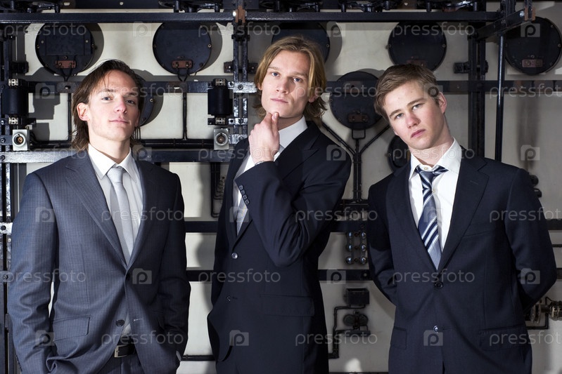 Трое деловых мужчин в производственном помещении