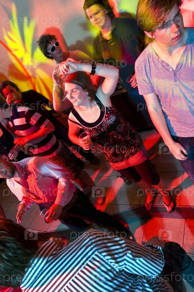 Танцующие люди в ночном клубе с различными световыми эффектами