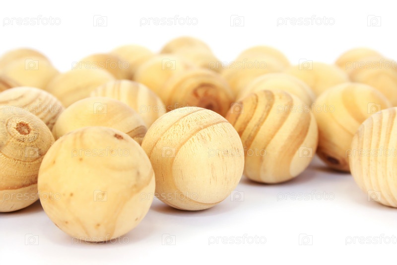 Деревянные шарики на белом фоне