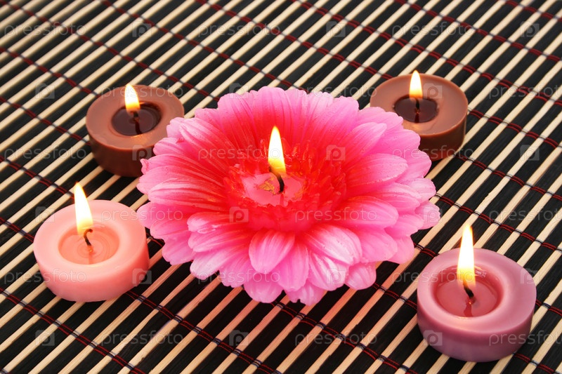 Яркие свечи на фоне бамбука