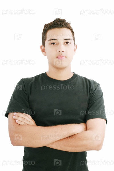 Молодой человек смотрит в камеру на белом фоне