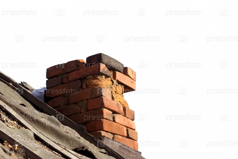 Старая кирпичная труба на белом фоне
