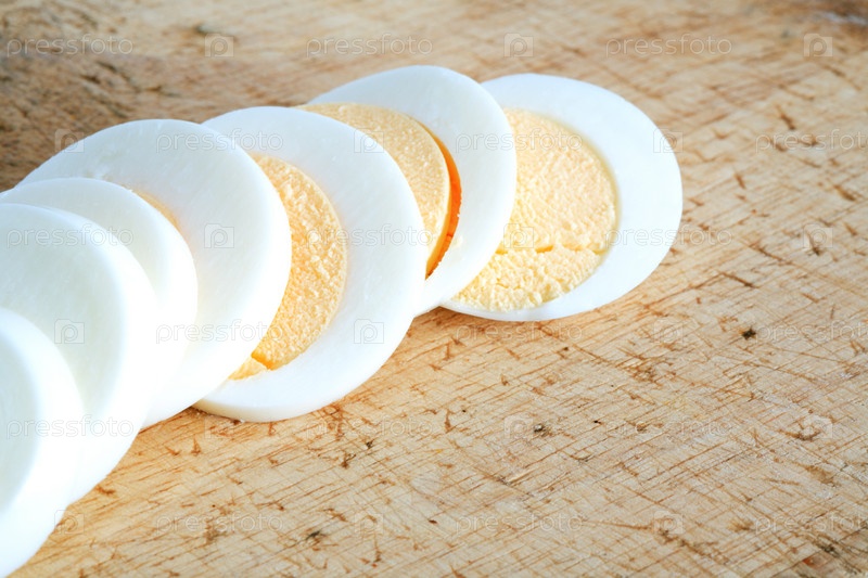 Нарезанные вареные яица на деревянной поверхности