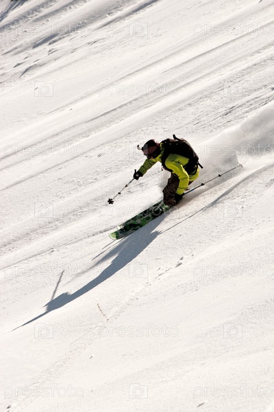 Фрирайдер на лыжах в горах Кавказа