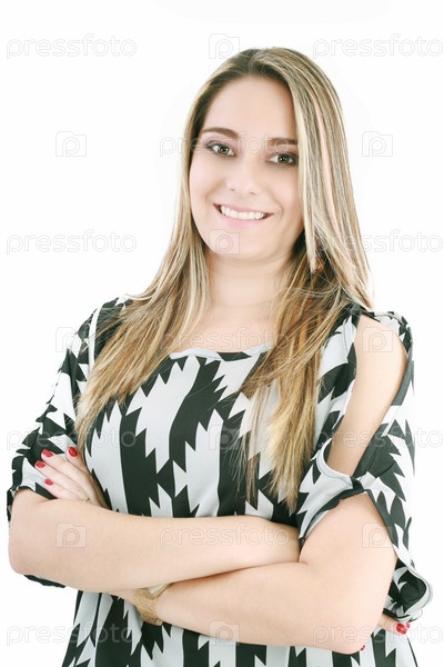 Портрет улыбающейся девушки на белом фоне