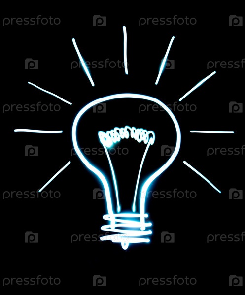 Белый контур лампочки на черном фоне