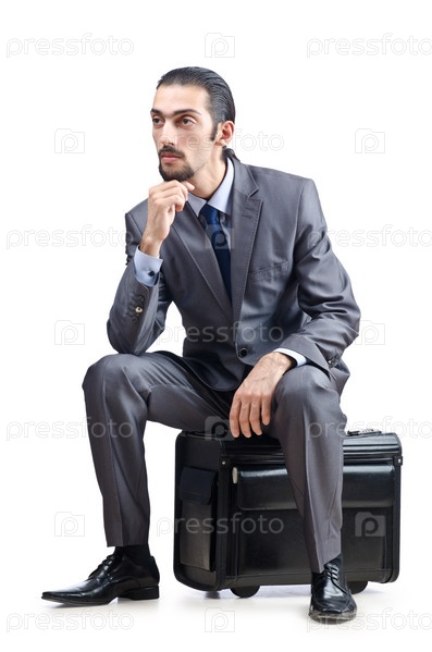Бизнесмен с чемоданом на белом фоне