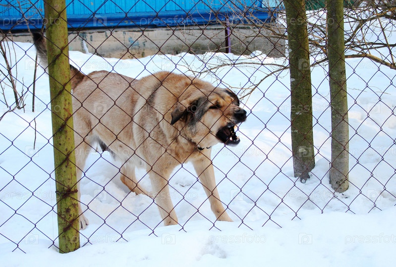 Лающая собака-охранник за забором