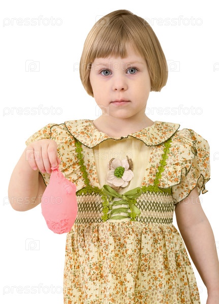 Очень грустная маленькая девочка с розовым воздушным шаром
