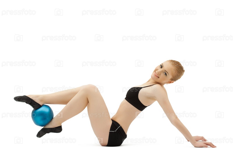 Портрет девушки с гимнастическим мячом на белом фоне