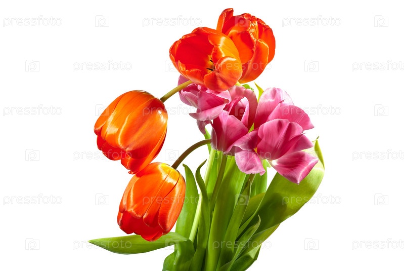 Весенний букет из тюльпанов, изолировано на белом фоне