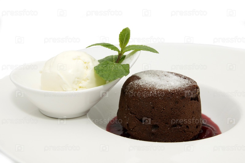 Шоколадный десерты и мороженое с мятой на белом фоне