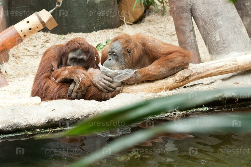 Пара орангутангов в Пражском зоопарке
