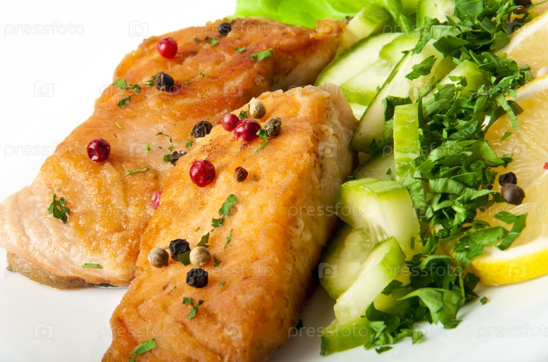 Жареная рыба с овощами