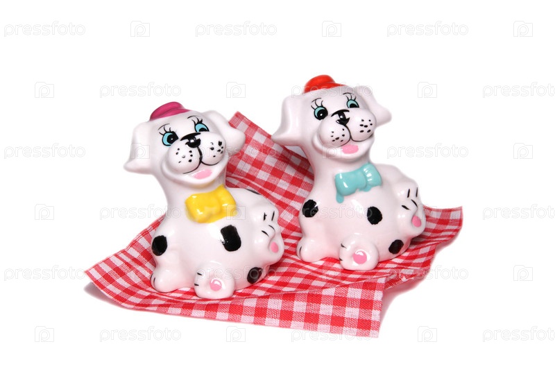Пара фарфоровых солонок в виде собачек на салфетке