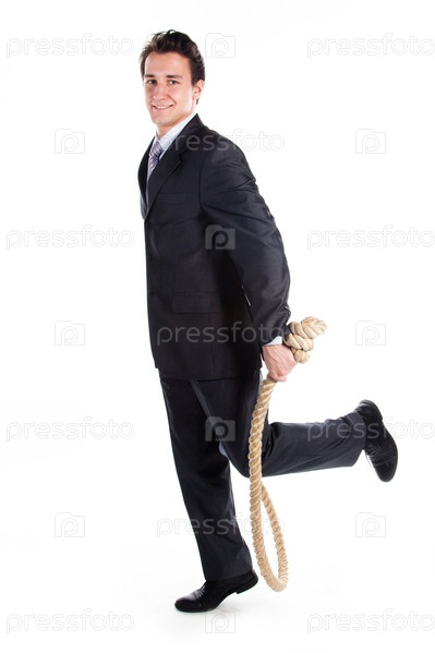 Деловой мужчина с канатом на белом фоне
