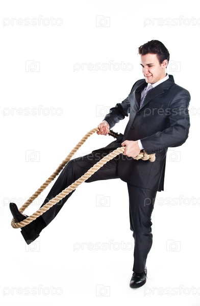 Деловой мужчина с канатом на белом фоне