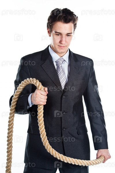 Деловой мужчина с канатом на белом фоне