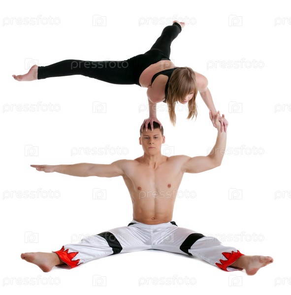 Два акробата на белом фоне