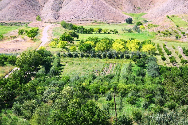 Горный пейзаж с садами в Армении