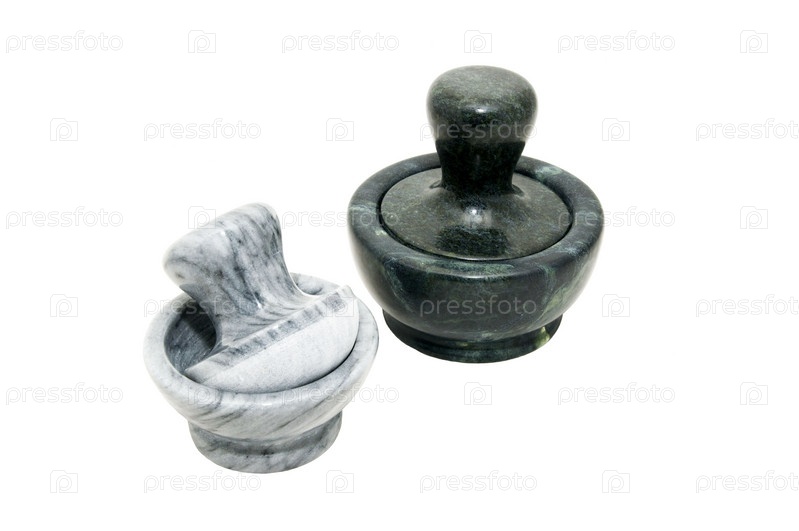 Две ступки с пестиком на белом фоне