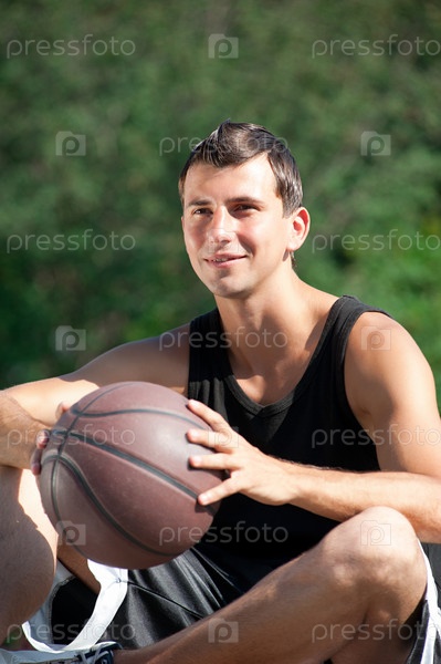 Молодой баскетболист с мячом