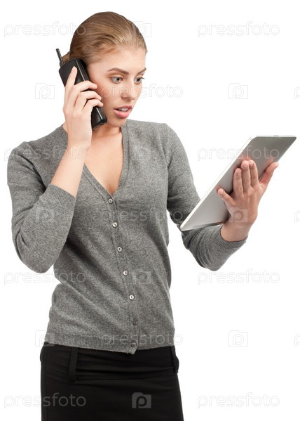 Деловая женщина с планшетом разговаривает по телефону