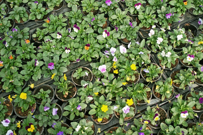 Яркие цветы в горшках