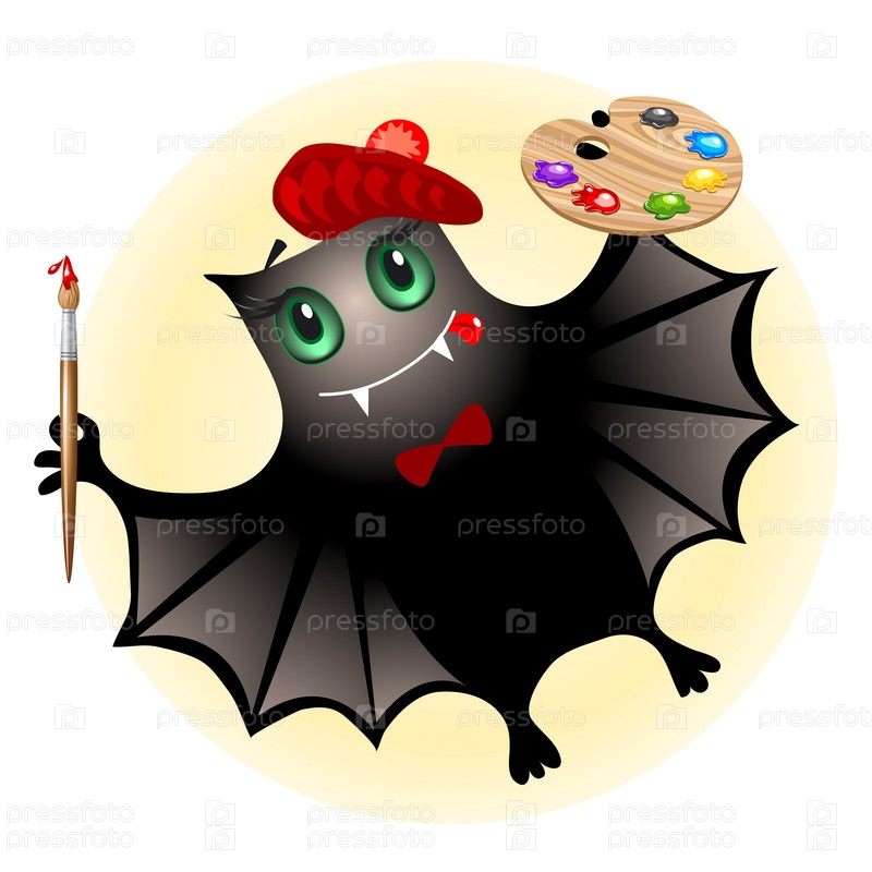 Летучая мышь с палитрой и кисточкой