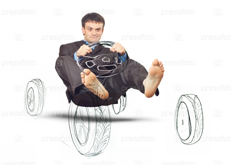 Молодой предприниматель на придуманном автомобиле
