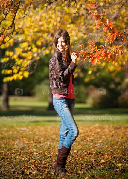 Молодая красивая женщина в осеннем парке