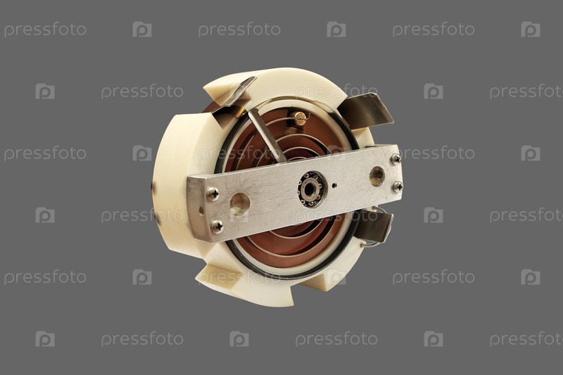 Лабораторный потенциометр крупным планом, изолированный на сером фоне