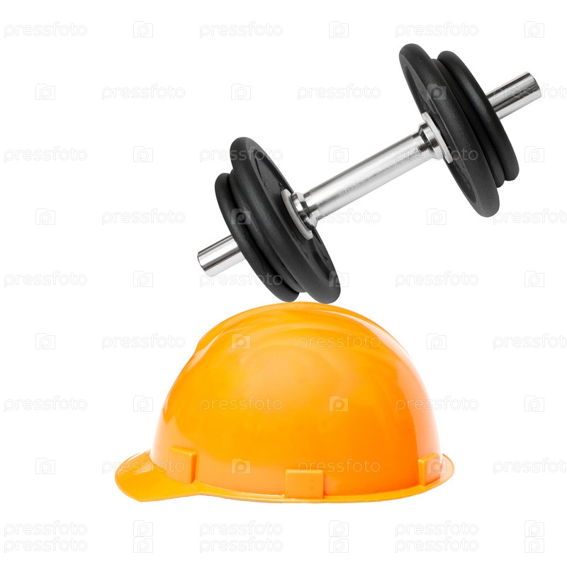 Гантеля падает на защитный шлем