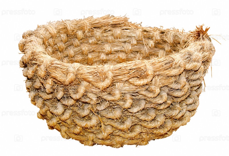Соломенной корзина ручной работы для хранения сухих вещей в традиционной сельском доме, Украина