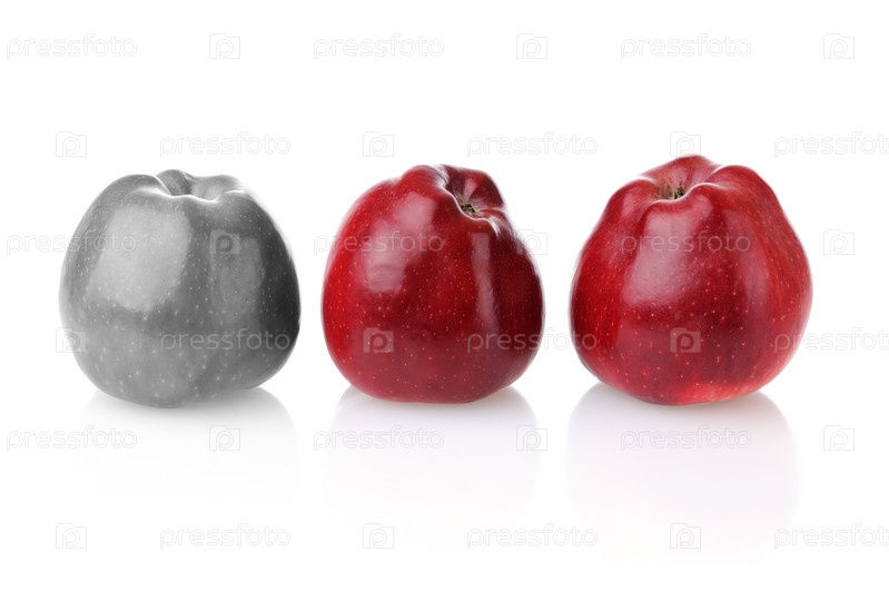 Два красных свежих яблока и одно бесцветное