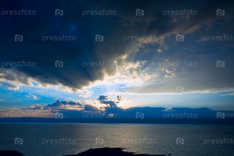 Темно-синий закат на Мертвом море, Иордания
