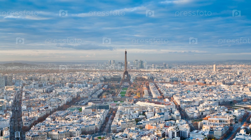 Вид на Эйфелеву башню и панорама Парижа после обеда
