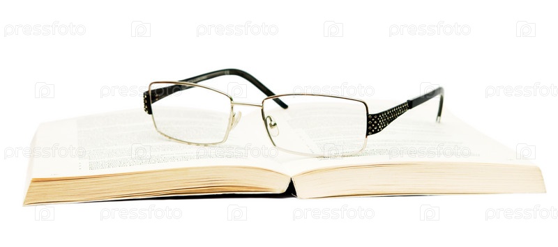 Очки с книгой на белом фоне