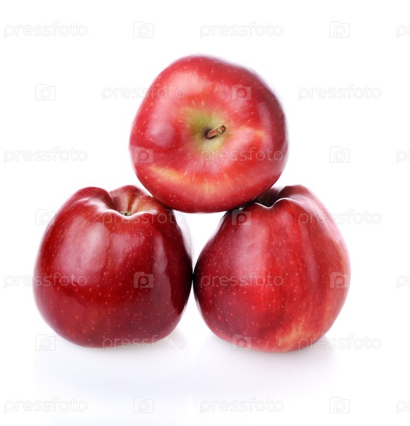 Пирамида с красными яблоками на белом фоне
