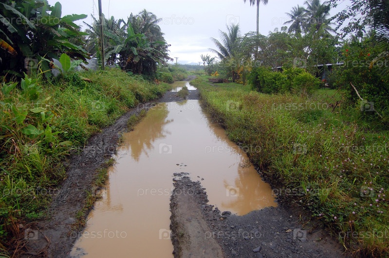 Затопленная дорога в деревне, Папуа-Новая Гвинея